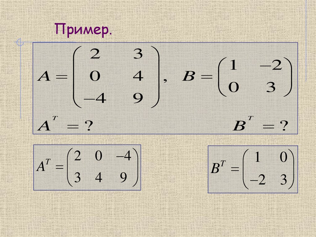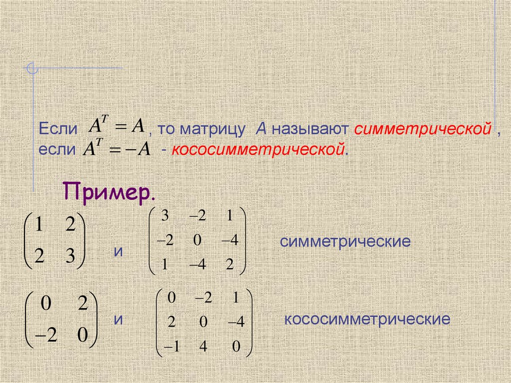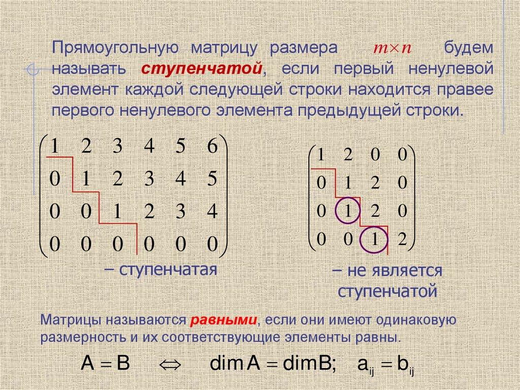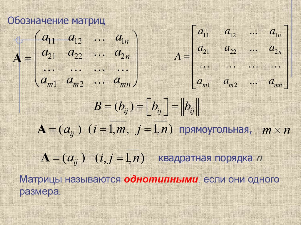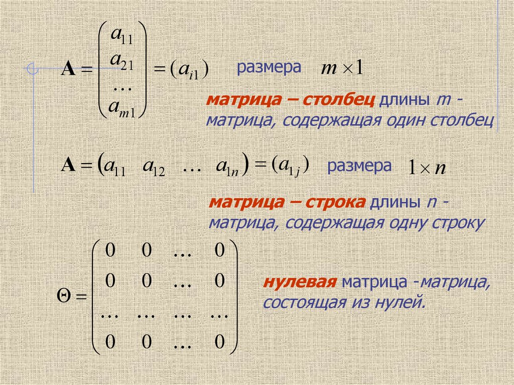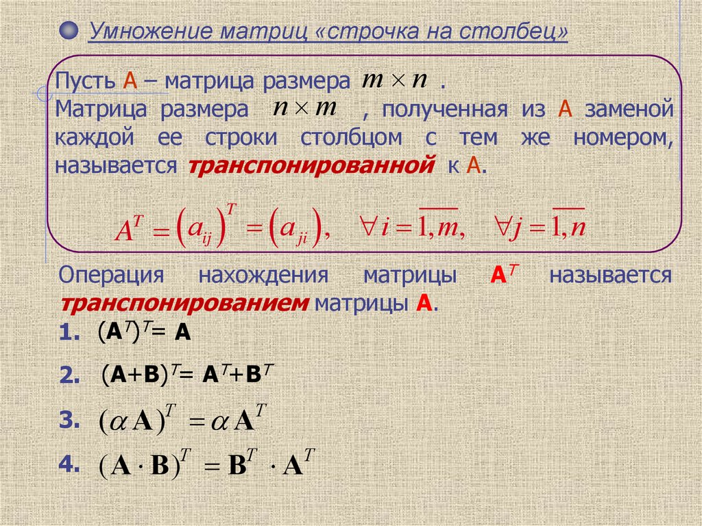Умножение матриц «строчка на столбец»Пусть A – матрица размера m n .