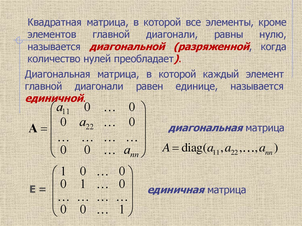 Матрица, у которой в начале главнойдиагонали стоят подряд несколько единиц, а