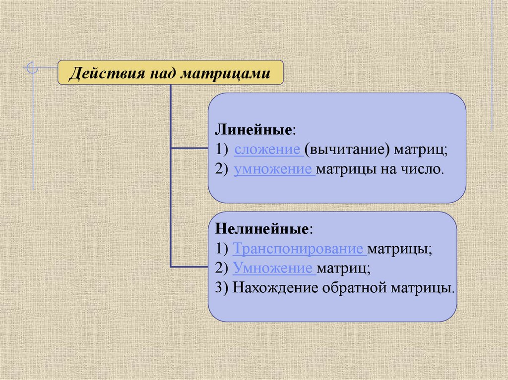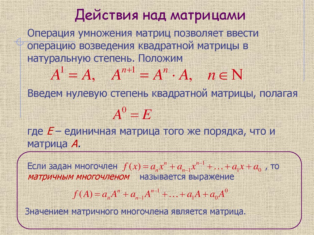 Действия над матрицамиОперация умножения матриц позволяет ввести
