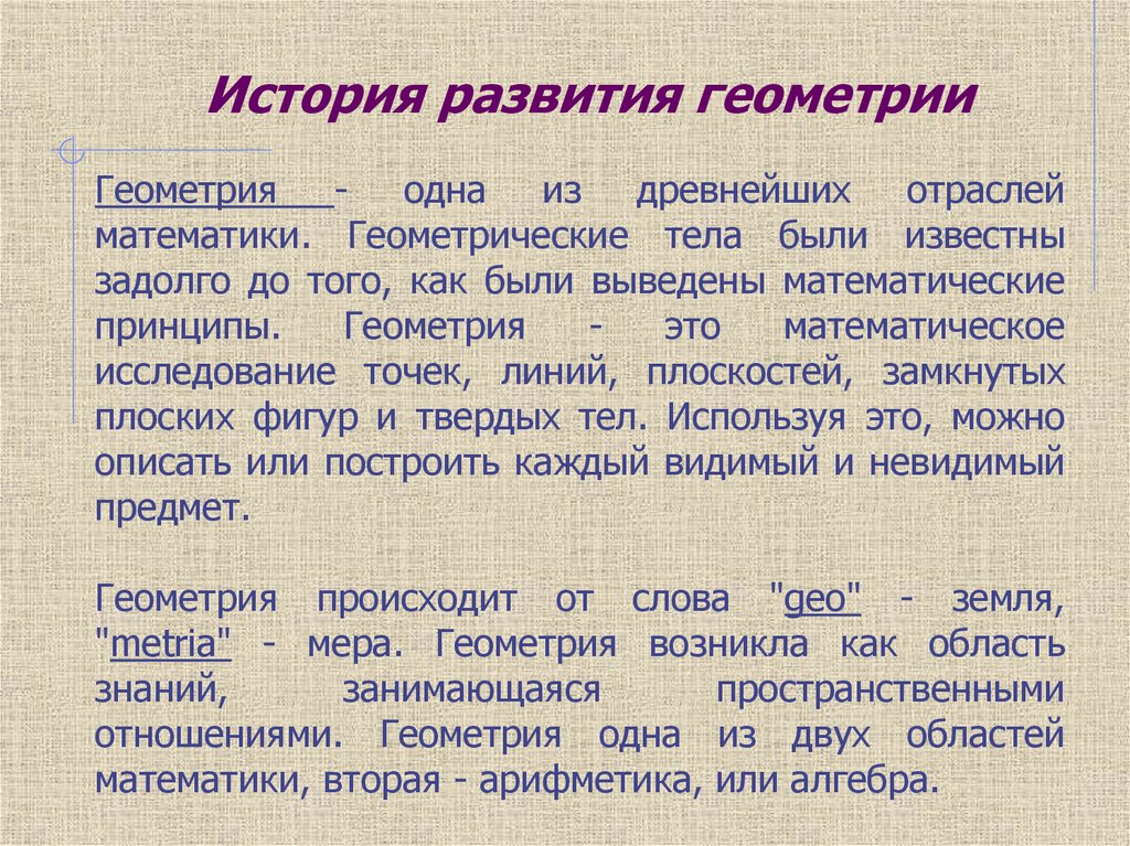История развития геометрииГеометрия - одна из древнейших отраслей