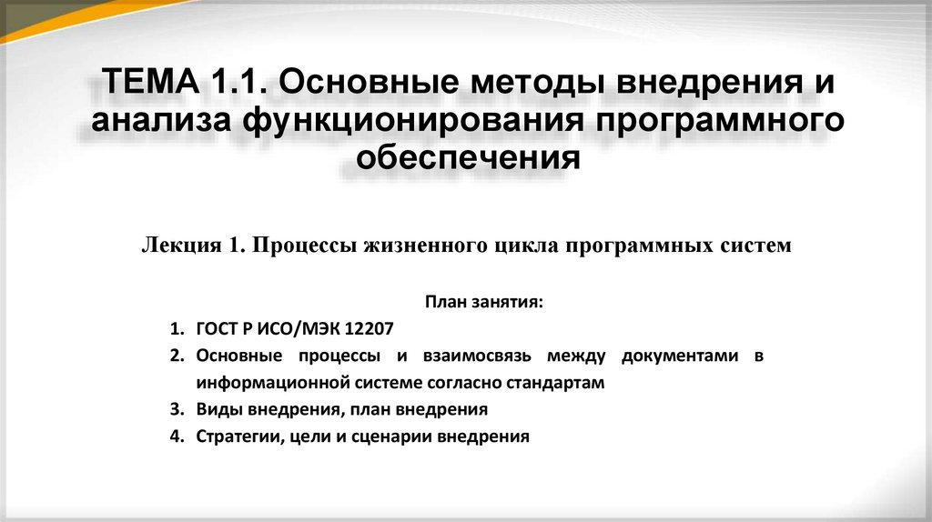 ТЕМА 1.1. Основные методы внедрения ианализа функционирования программного