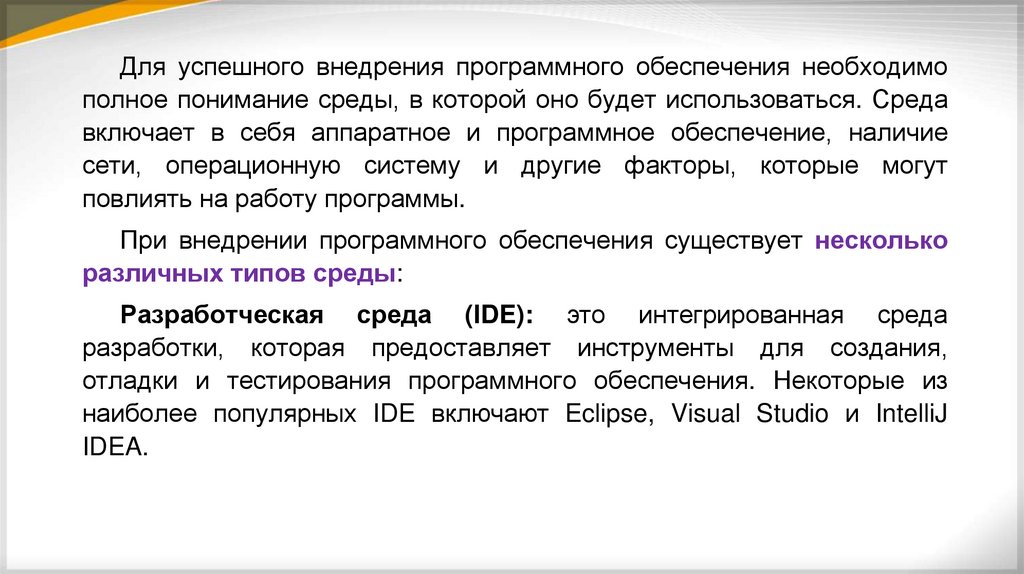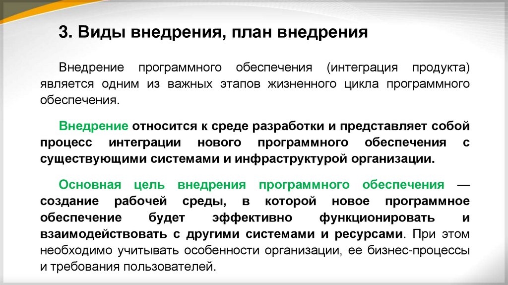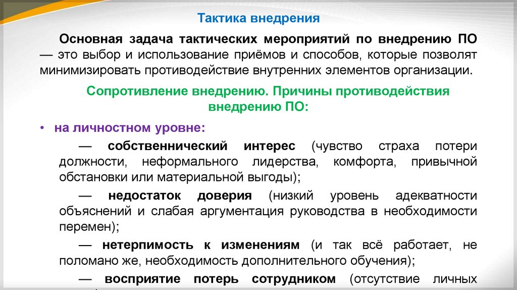 Тактика внедренияОсновная задача тактических мероприятий по внедрению ПО