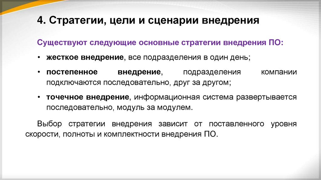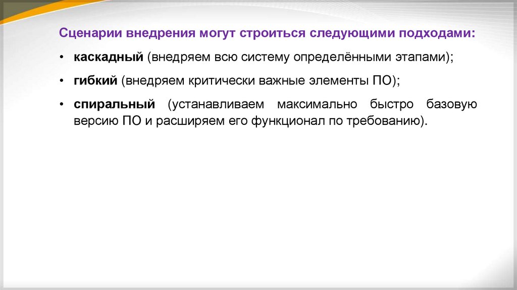 7. Какие существуют сценарии и стратегии внедрения ПО?
