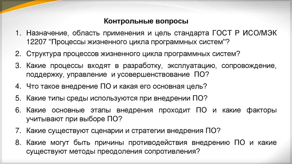 Контрольные вопросы1. Назначение, область применения и цель стандарта ГОСТ Р ИСО/МЭК