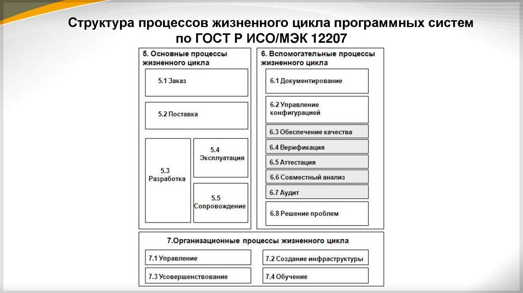 Структура процессов жизненного цикла программных системпо ГОСТ Р ИСО/МЭК 12207