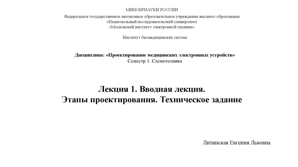 Дисциплина: «Проектирование медицинских электронных устройств»