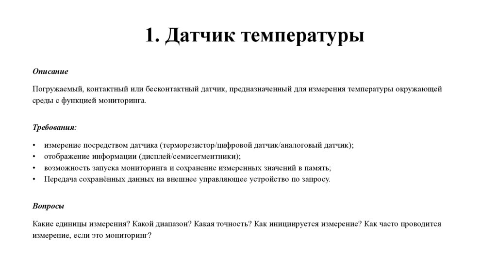 Какой диапазон измерения? Какая точность? Как инициируется измерение? Как часто проводится измерение, если это