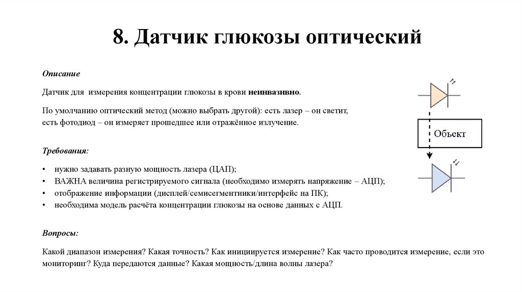 Датчик для измерения концентрации глюкозы в крови неинвазивно.