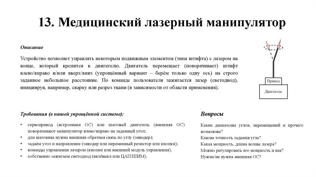 заданное небольшое расстояние. По команде пользователя зажигается лазер (светодиод),