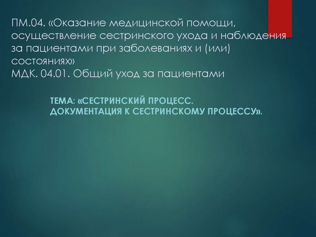 1. ПМ.04. «Оказание медицинской помощи, осуществление сестринского ухода и наблюдения за пациентами при заболеваниях и (или)