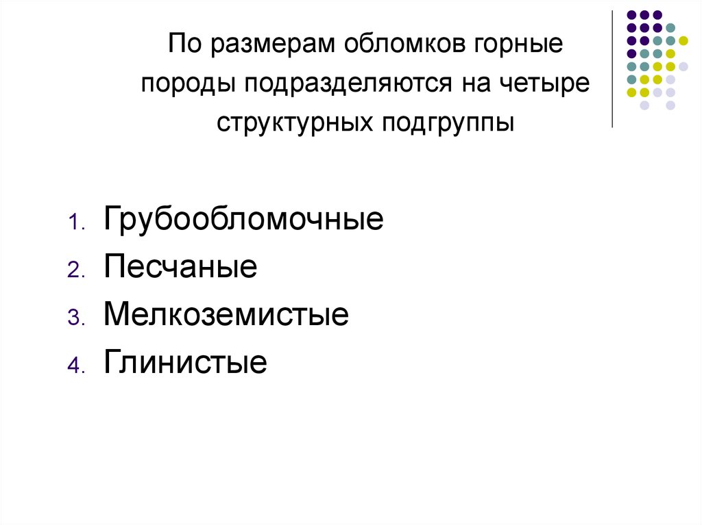 Размер обломков от 0,1 до 2 ммК ним относятся пески и песчаники