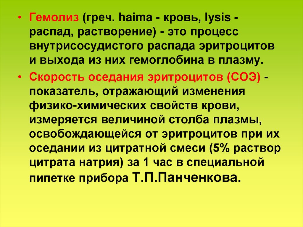 • Гемолиз (греч. haima - кровь, lysis распад, растворение) - это процессвнутрисосудистого распада эритроцитов