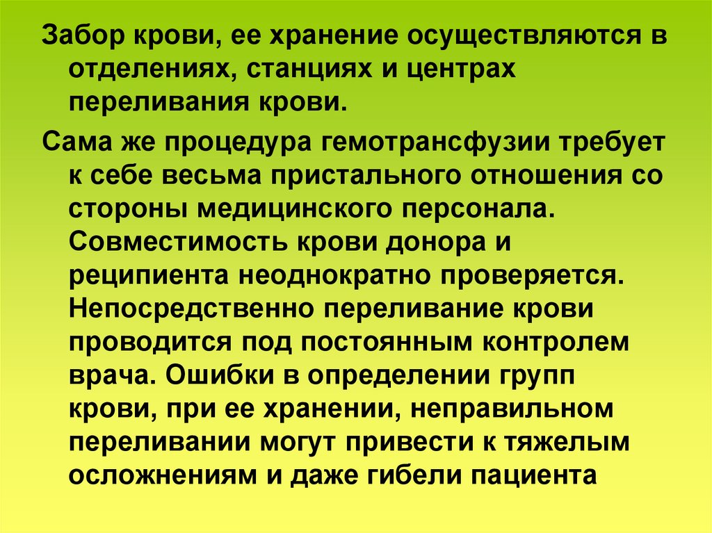 Забор крови, ее хранение осуществляются вотделениях, станциях и центрах
