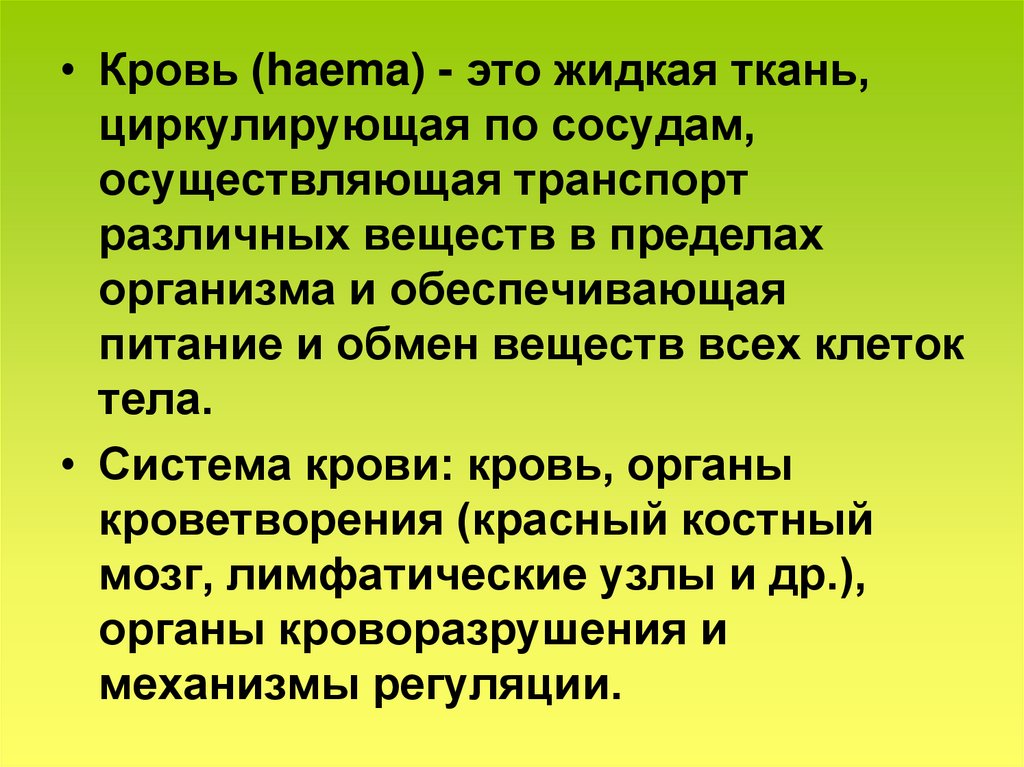• Кровь (haema) - это жидкая ткань,циркулирующая по сосудам,