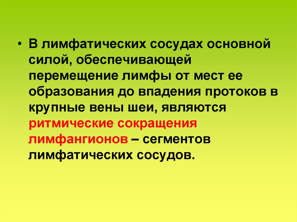 • В лимфатических сосудах основнойсилой, обеспечивающей