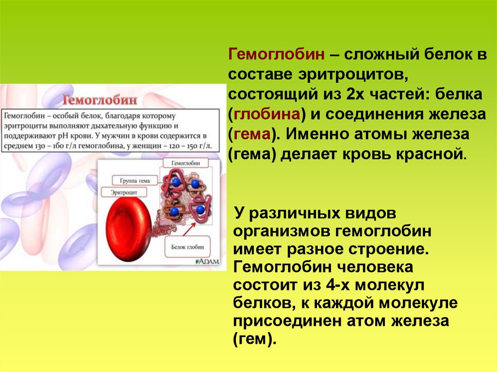 Гемоглобин – сложный белок всоставе эритроцитов,