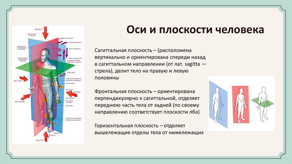 Оси и плоскости человекаСагиттальная плоскость – (расположена