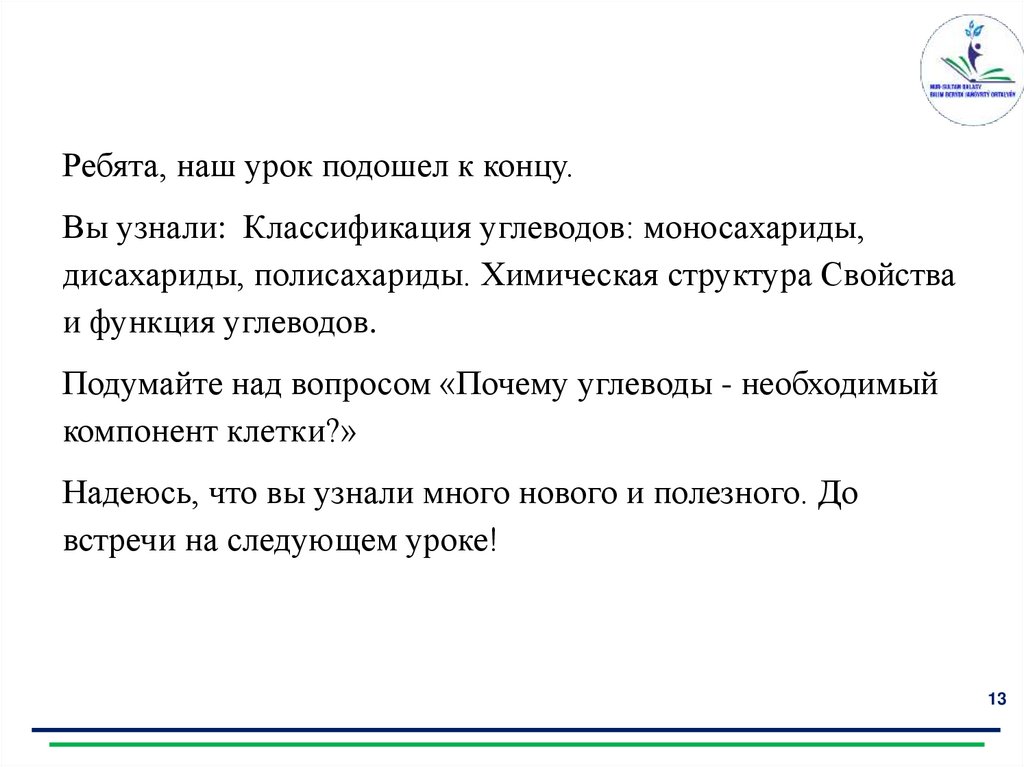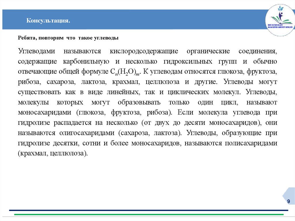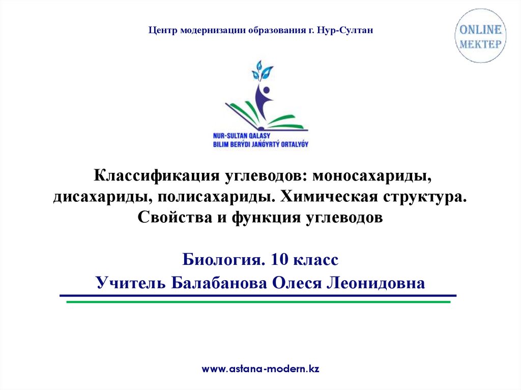 Центр модернизации образования г. Нур-СултанКлассификация углеводов: моносахариды,