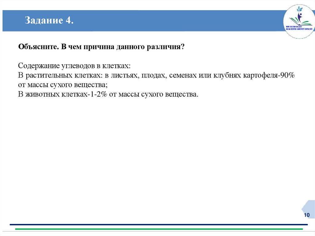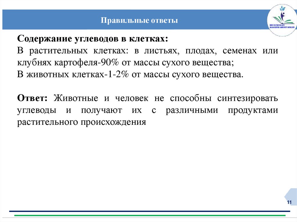 Правильные ответыСодержание углеводов в клетках: