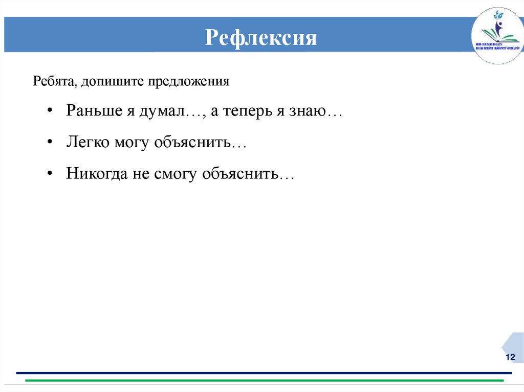 РефлексияРебята, допишите предложения