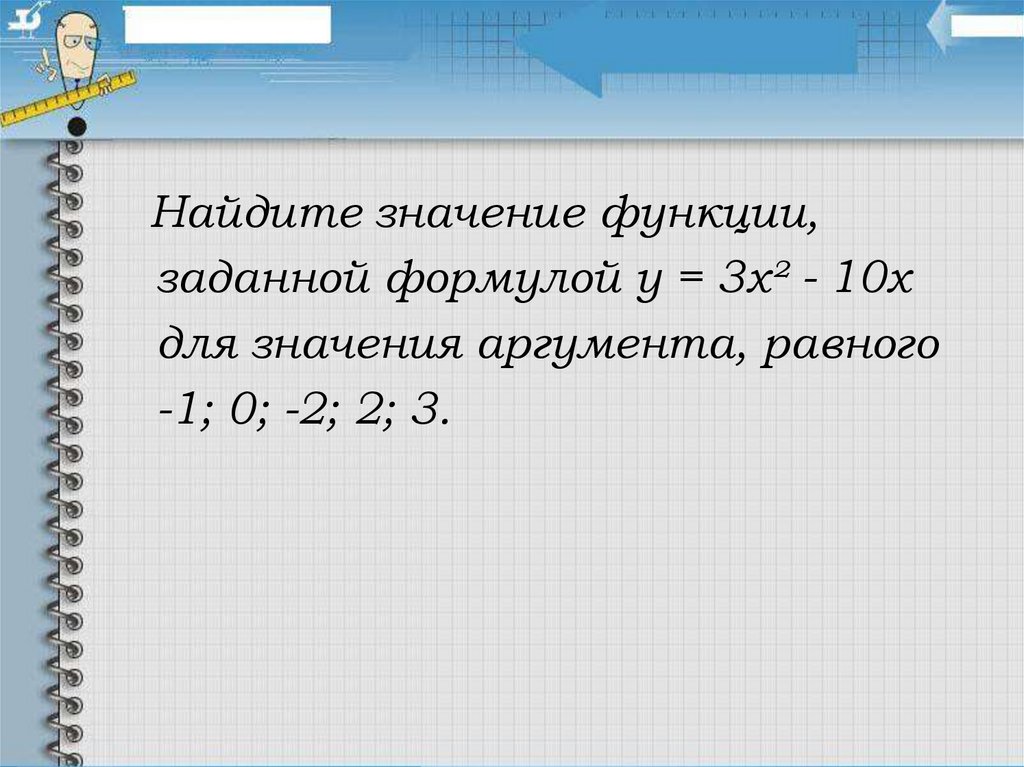 Найдите значение функции,заданной формулой у = 3х² - 10х