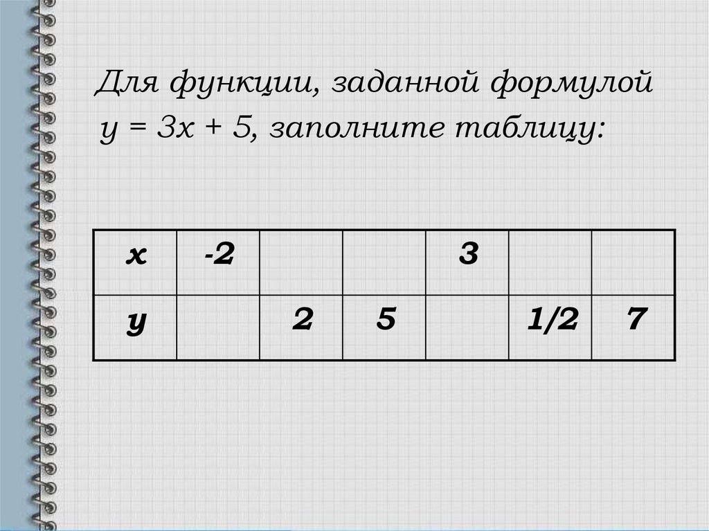 Для функции, заданной формулойу = 3х + 5, заполните таблицу:
