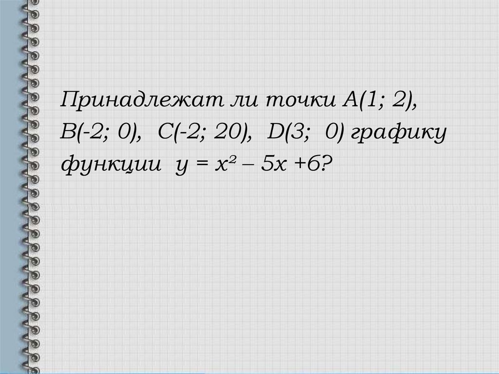 Принадлежат ли точки А(1; 2),В(-2; 0), С(-2; 20), D(3; 0) графику
