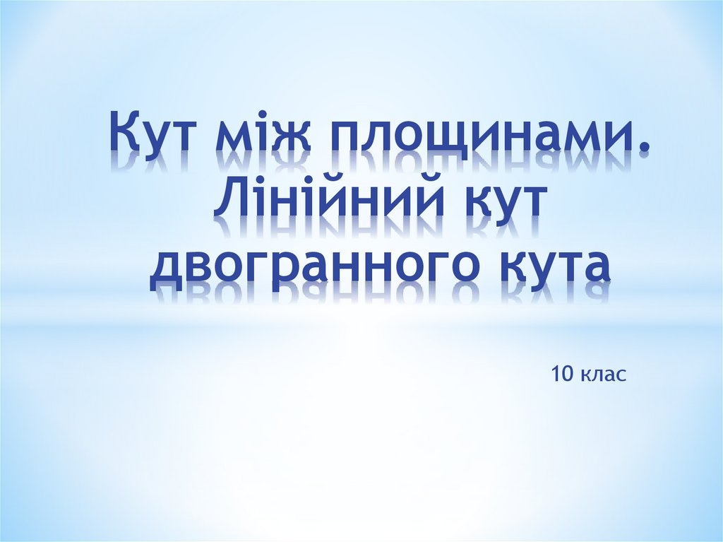 Кутом між площинами, які перетинаються,називається кут між прямими, проведеними в