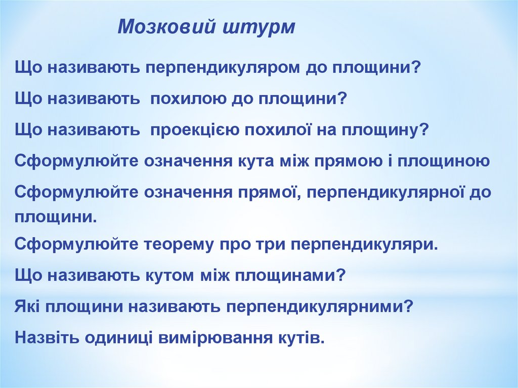 Мозковий штурмЩо називають перпендикуляром до площини?