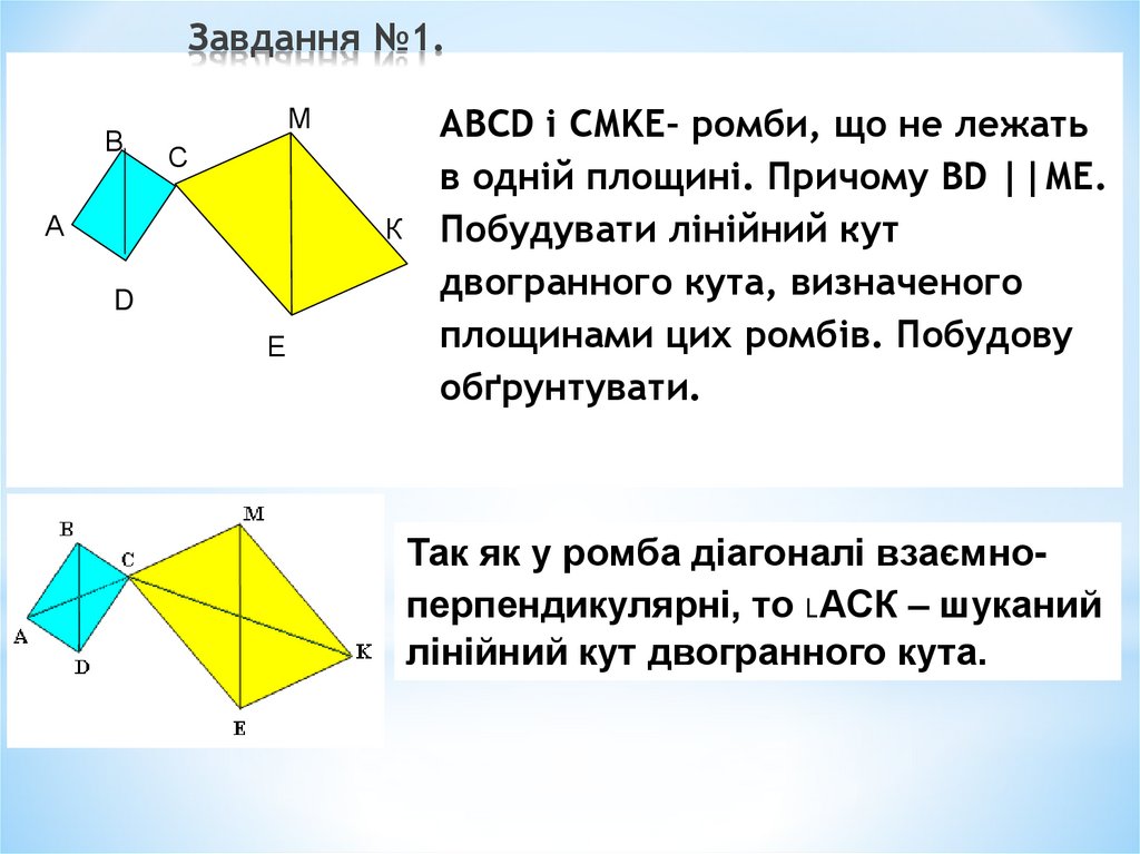 Назвiть: 1) лiнiйний кут двогранного кута мiж