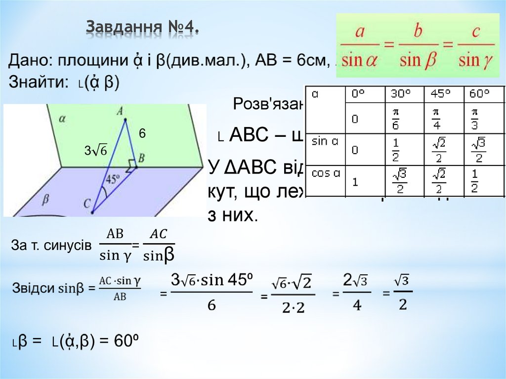 Завдання №5.Розв’язок: Нехай сторона АВ трикутника АВС лежить _____ ,
