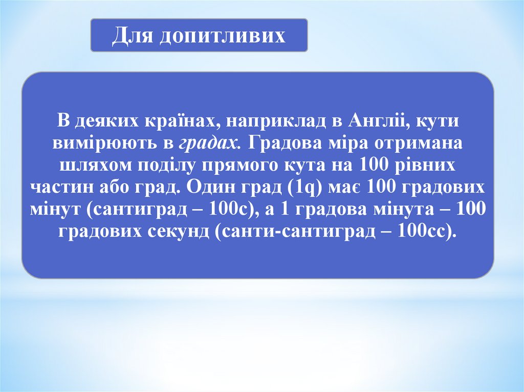 Для допитливихВ деяких країнах, наприклад в Англіі, кути