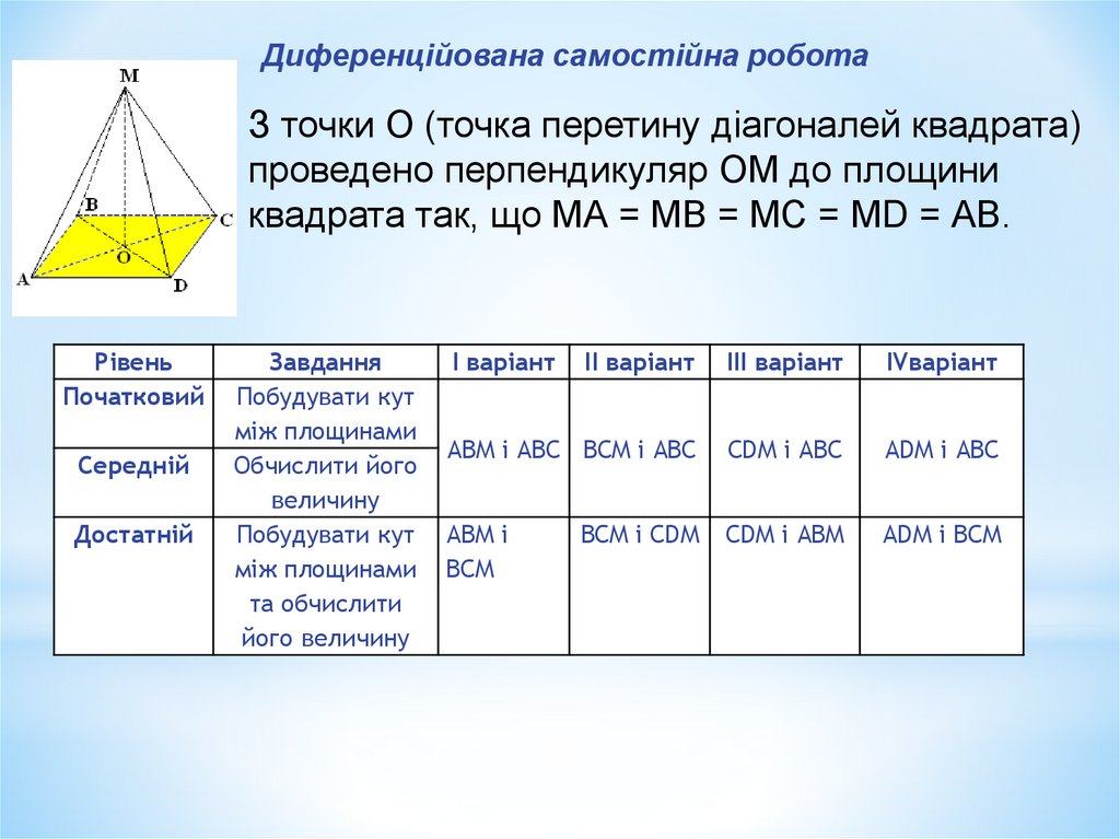 Диференційована самостійна роботаЗ точки О (точка перетину діагоналей квадрата)