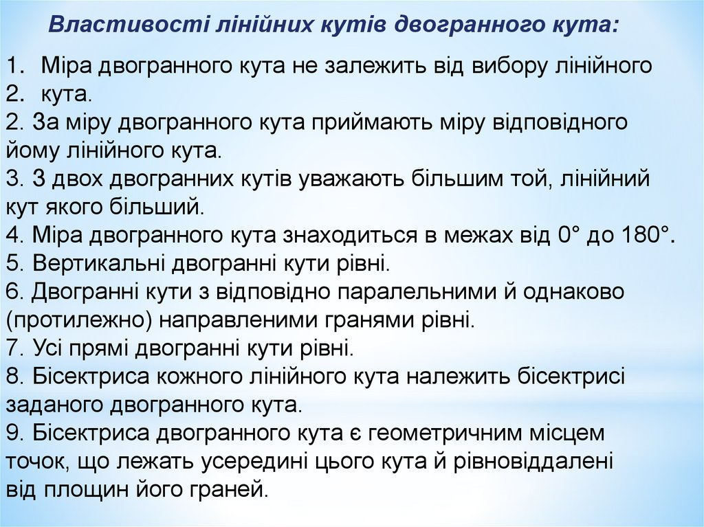 3. З двох двогранних кутів уважають більшим той, лінійний