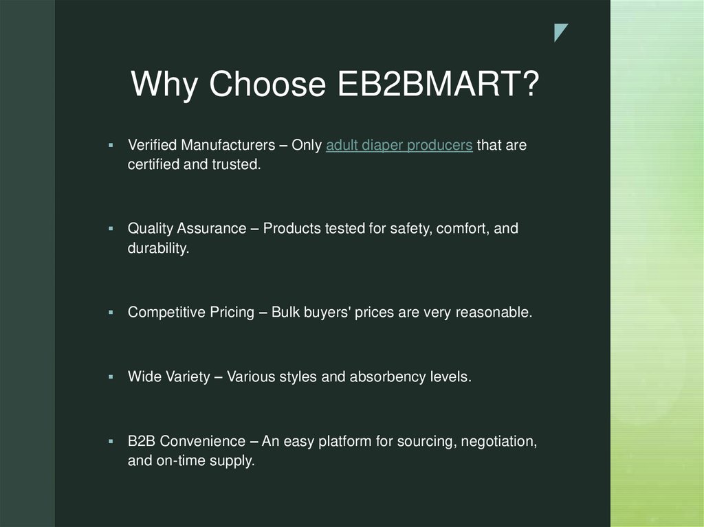 EB2BMART partners with reputable diaper manufacturers and
