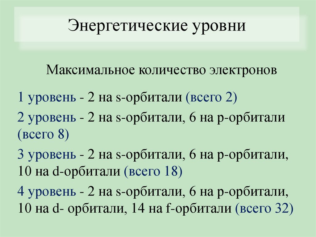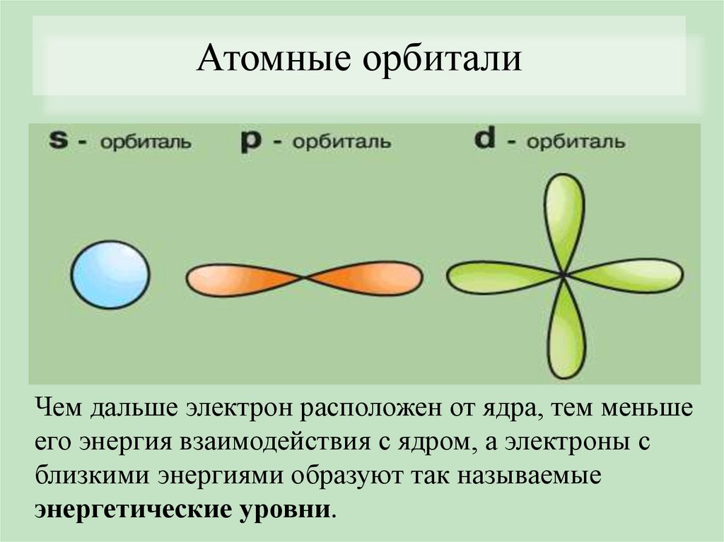 Атомные орбиталиЧем дальше электрон расположен от ядра, тем меньше