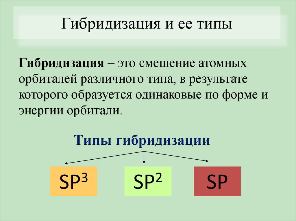 Гибридизация и ее типыГибридизация – это смешение атомных