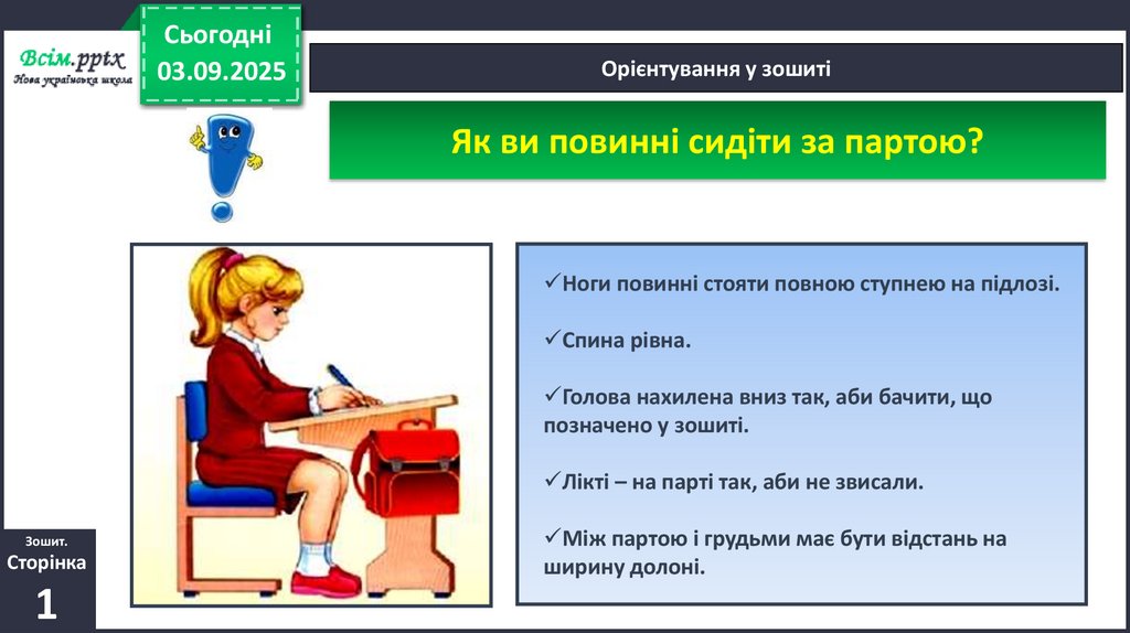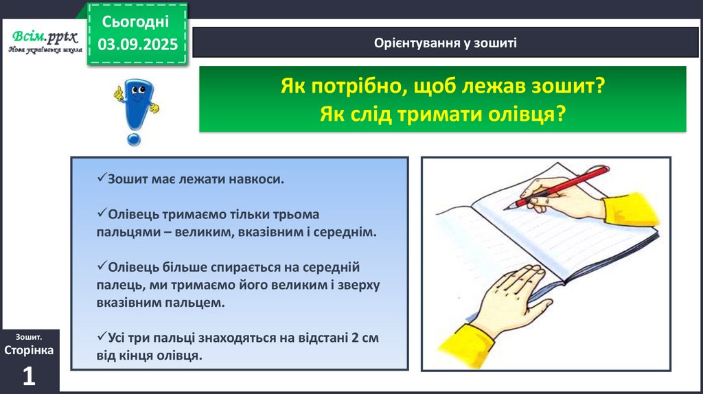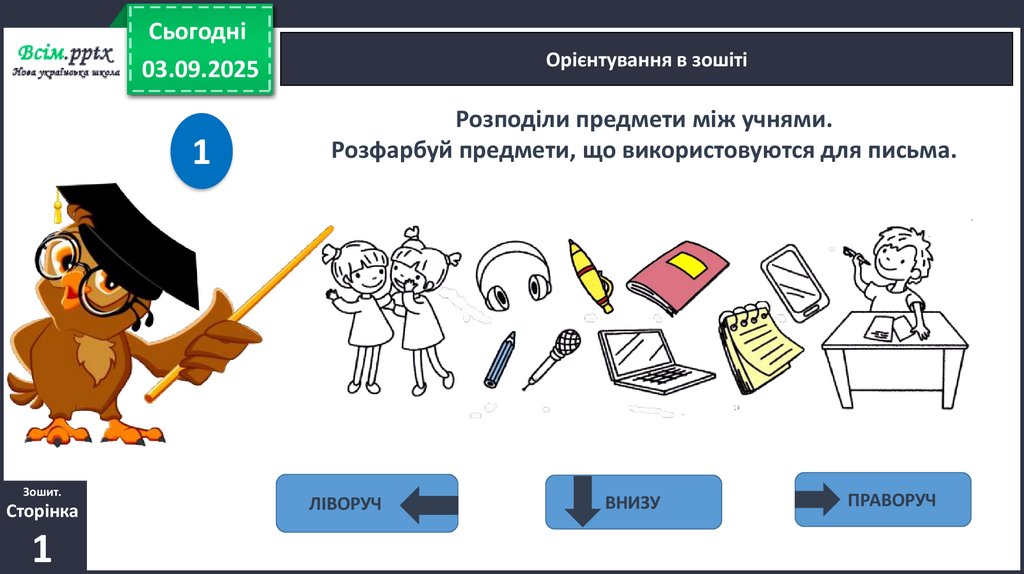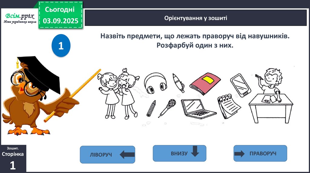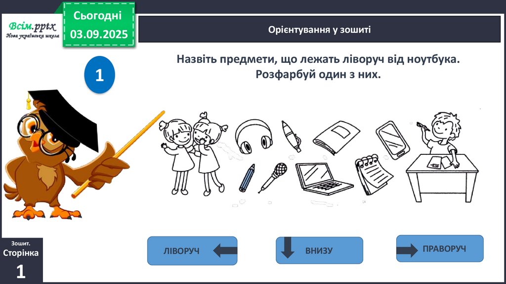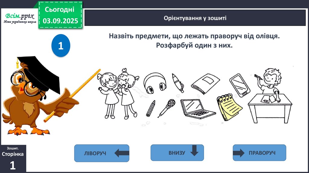 Орієнтування на сторінці зошита (праворуч, ліворуч). Урок №2