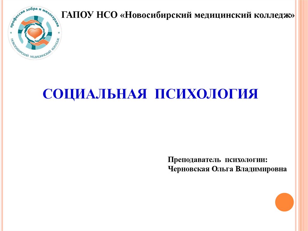 ГАПОУ НСО «Новосибирский медицинский колледж»СОЦИАЛЬНАЯ ПСИХОЛОГИЯ