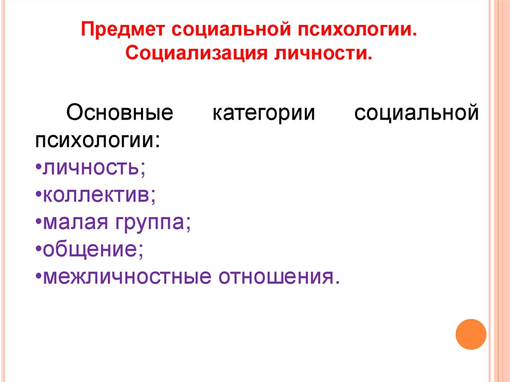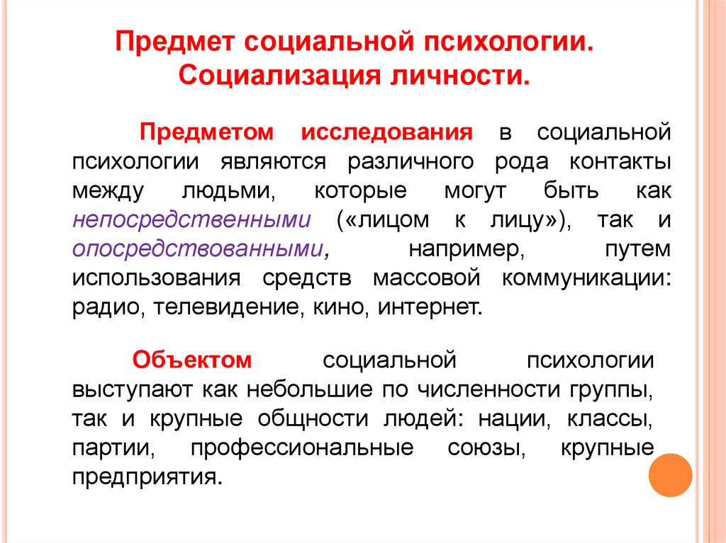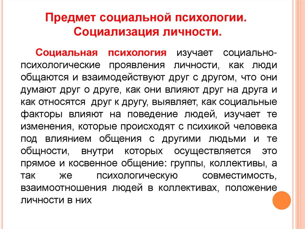 Предмет социальной психологии.Социализация личности.