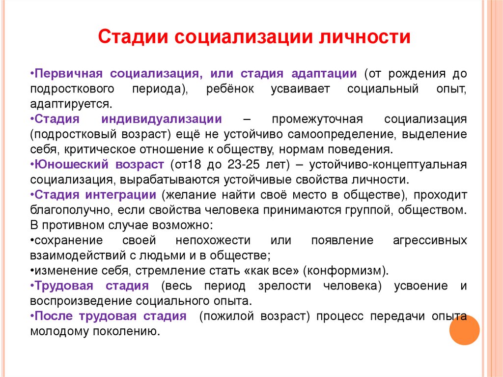 4. Охарактеризовать стадии социализации личности.