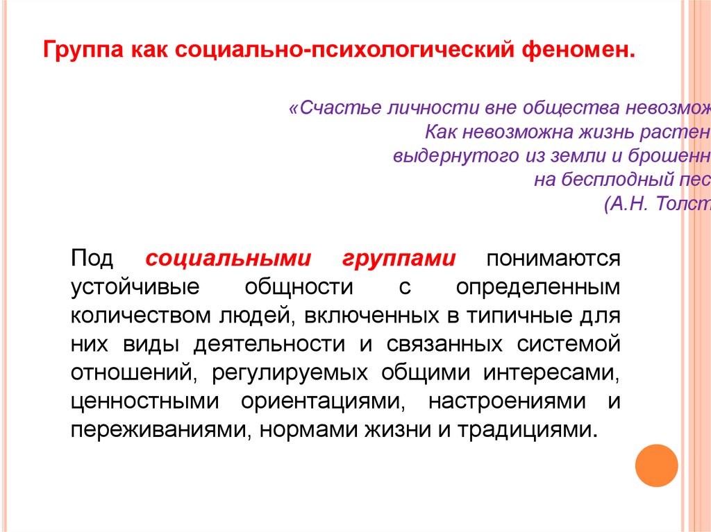 •Социальная психология групп изучает групповые явления