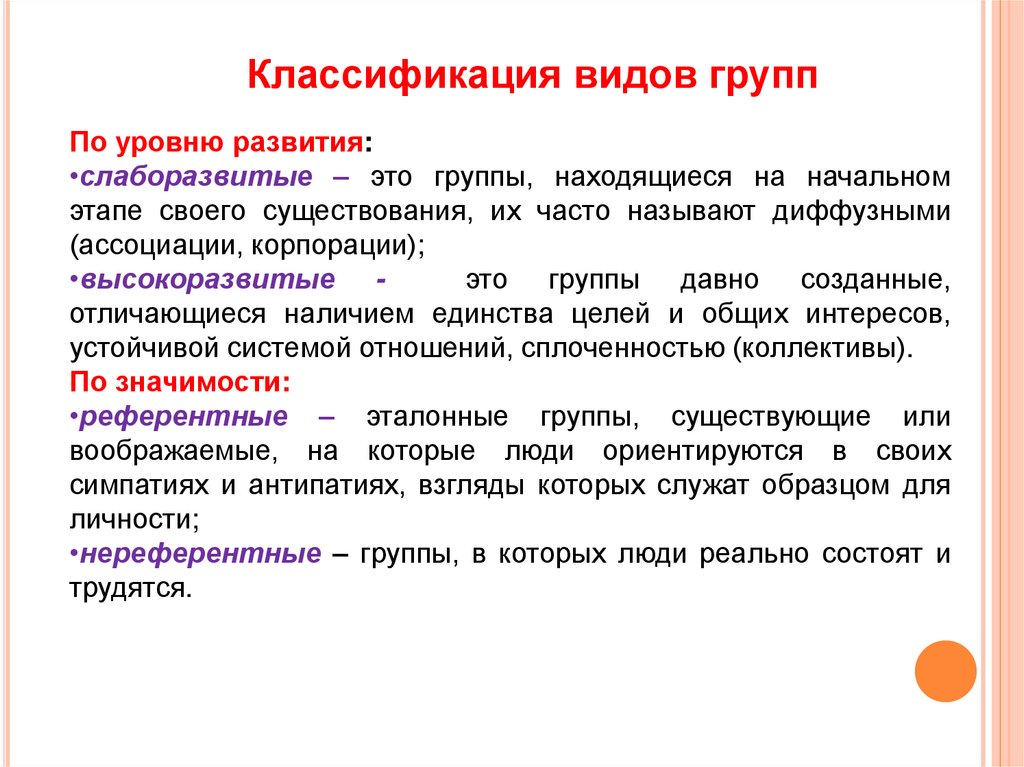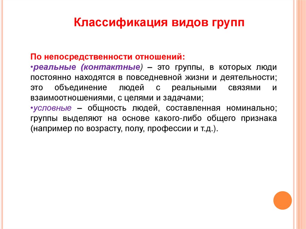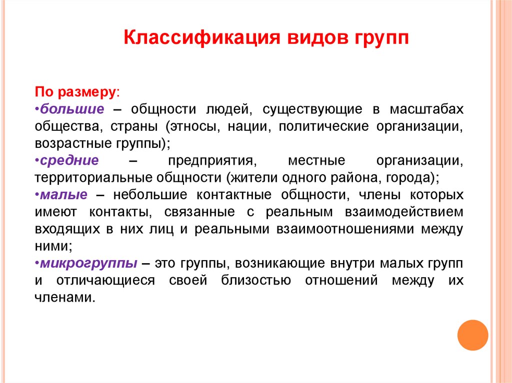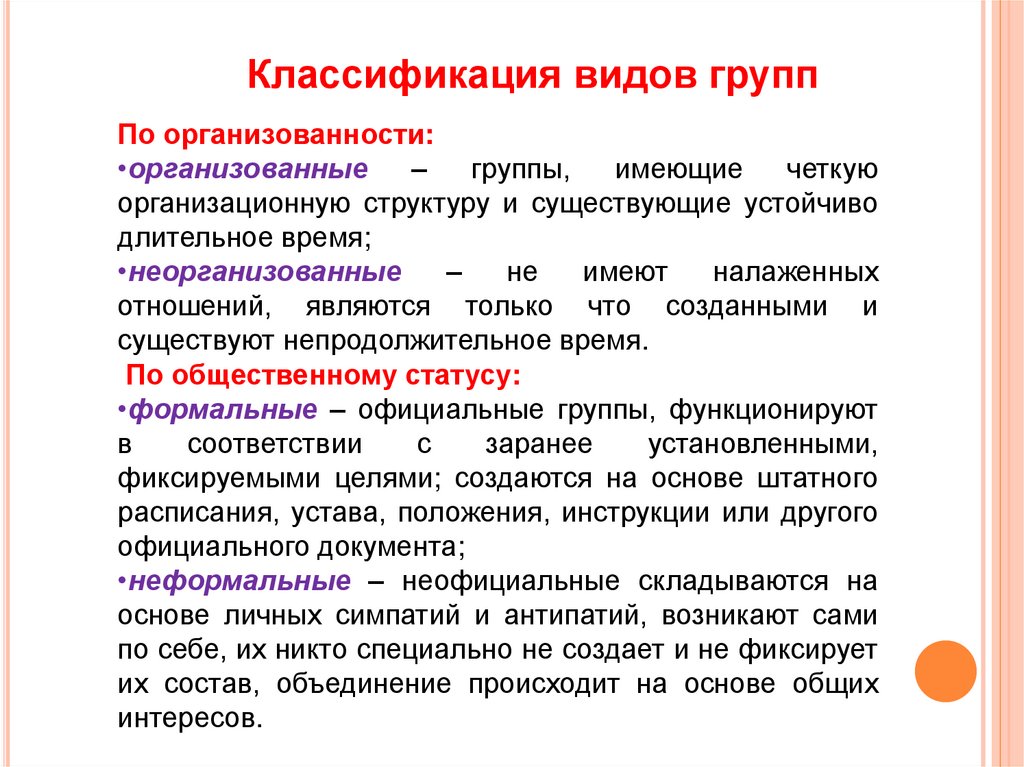 7. Охарактеризовать классификацию видов групп.