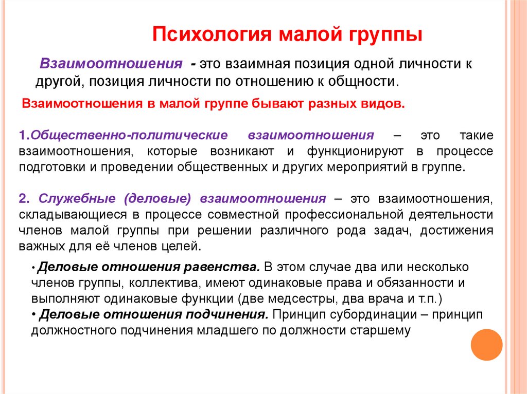 8. Перечислить и охарактеризовать виды взаимоотношений в малых