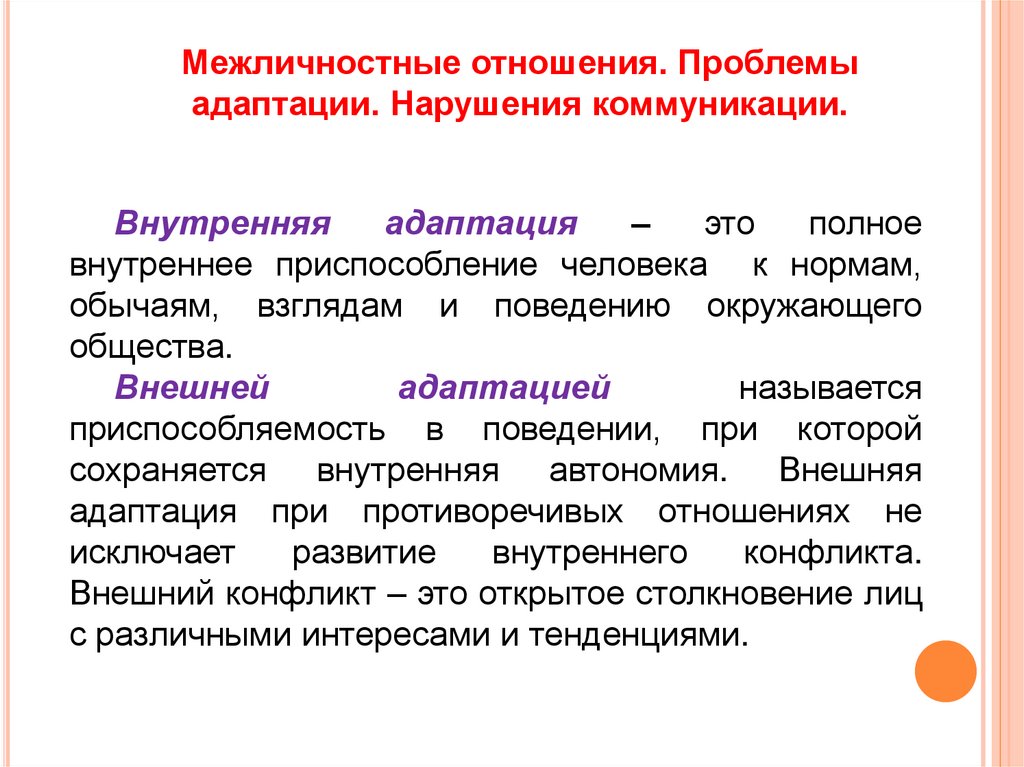 •межличностные отношения.