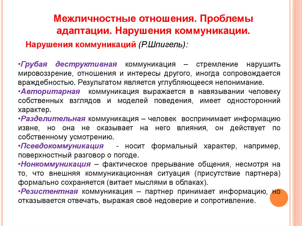 Нарушения коммуникаций (Р.Шпигель):