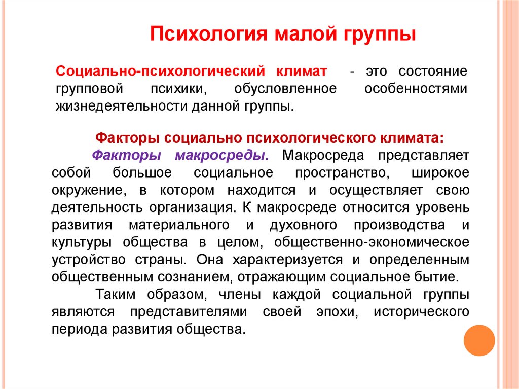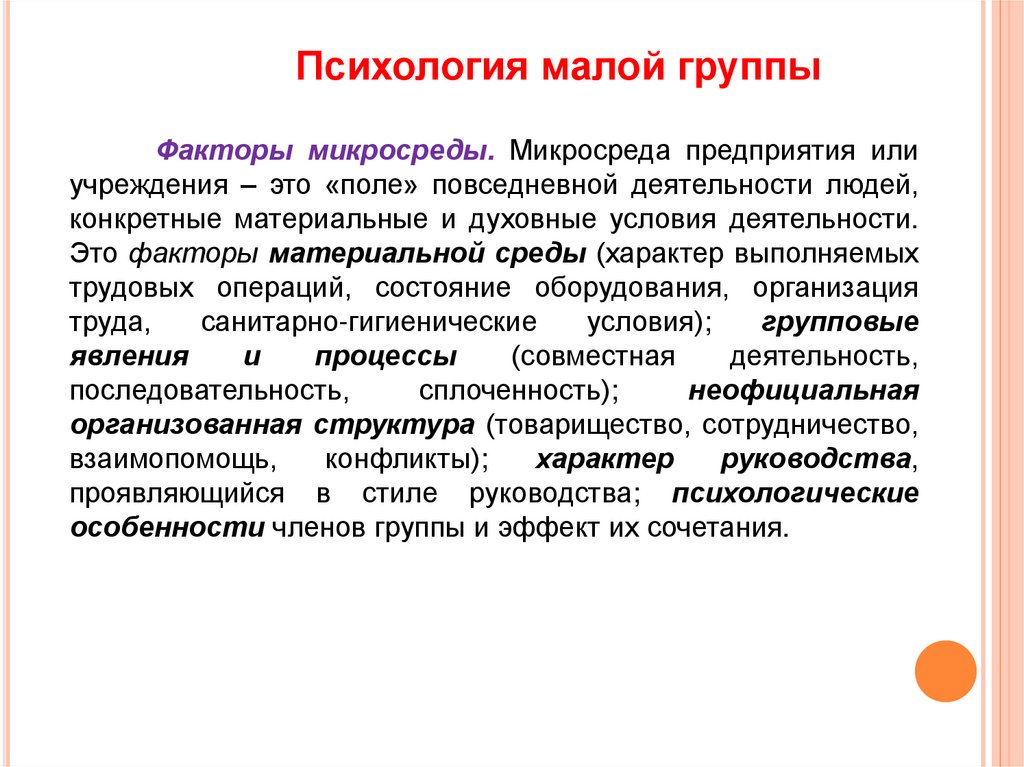 Психология малой группыФакторы микросреды. Микросреда предприятия или