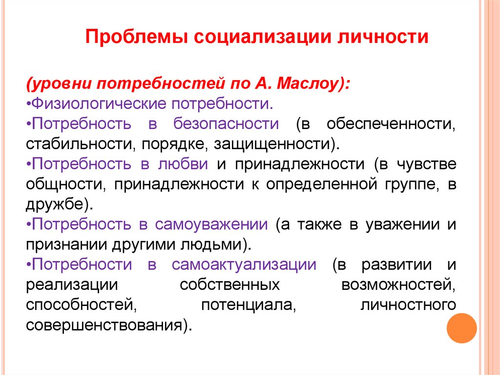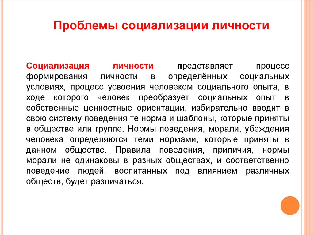 Проблемы социализации личностиСоциализация