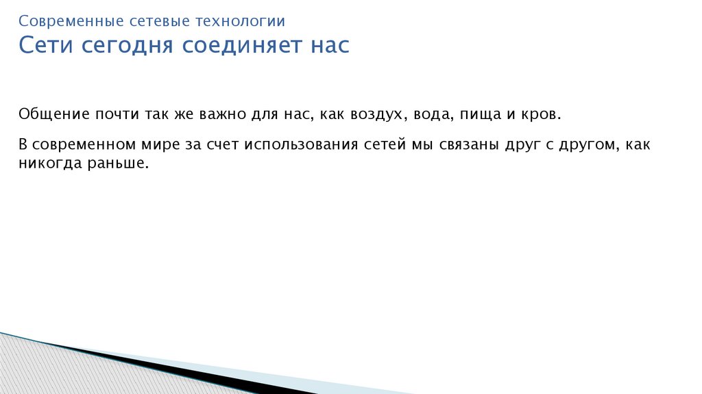 В современном мире за счет использования сетей мы связаны друг с другом, как
