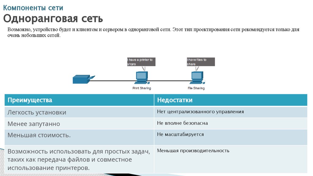 Возможно, устройство будет и клиентом и сервером в одноранговой сети. Этот тип проектирования сети рекомендуется только для